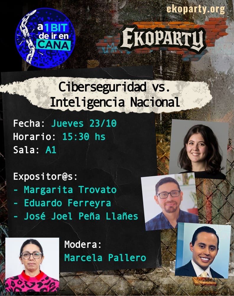 El panel, organizado por el espacio “A 1 bit de ir en cana”, propone debatir las confusiones actuales en torno a la regulación estatal sobre ciberseguridad y ciberinteligencia, y qué diferencias tienen.